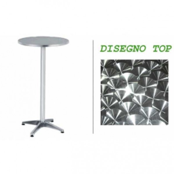R60-A -Mesas de aluminio redondas, diámetro 60 cm x altura 110 cm, con soporte central de 4 patas (estándar o impermeable), para actividades al aire libre, jardín, terraza, patio, bar, pub, tienda, restaurante, panadería, heladería con la mejor relación calidad-precio.