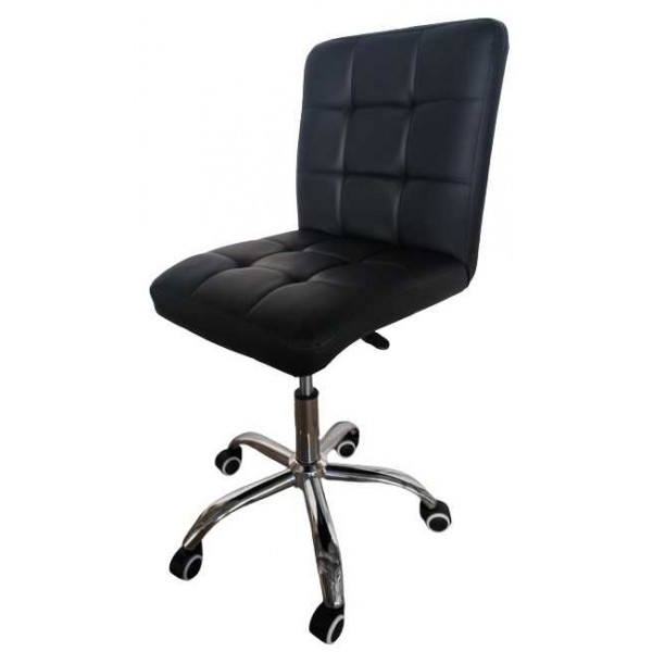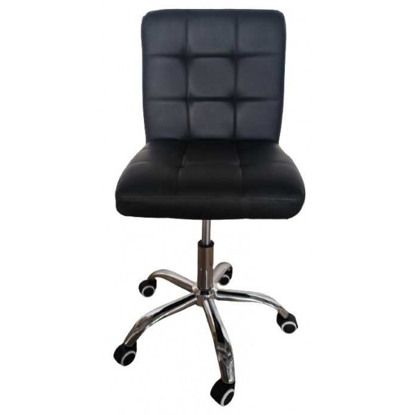 Taburetes silla con 5 ruedas, giratorios y elevables con palanca, estructura de metal cromado, asiento acolchado tapizado en ecopiel negra para salas de poker y profesionales del bienestar como esteticistas, manicuristas, pedicuristas pero también para artesanos y oficinas al mejor precio-calidad proporción.