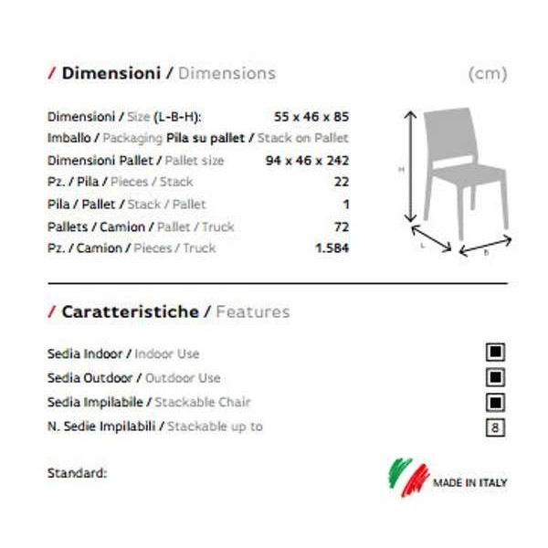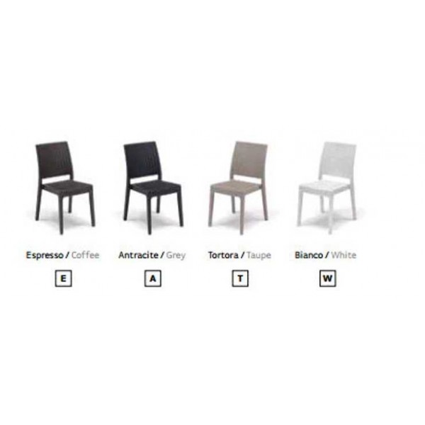 El espacio entre el respaldo y el asiento aligera la silla y afina sus líneas haciéndola delicada y agradable a la vista. Una exitosa reinterpretación del modelo Selene con un toque de diversidad. Está equipado con 4 pies antideslizantes, no requiere mantenimiento y es resistente a la intemperie.