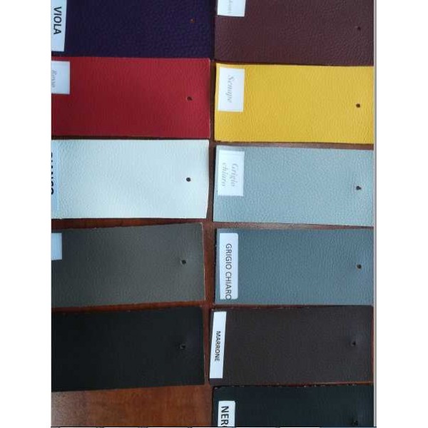 Asiento y respaldo: cuero ecológicoColores: estándarApoyabrazos: fijoMovimiento: contacto permanenteElevación: gasBase: giratorio de 5 radios en nylonRuedas: giro libre