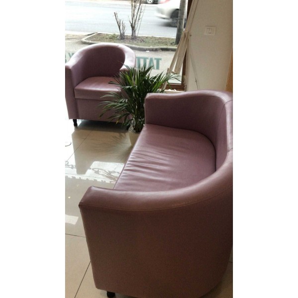 Estructura de madera, relleno de gomaespuma, tapicería de piel sintética.