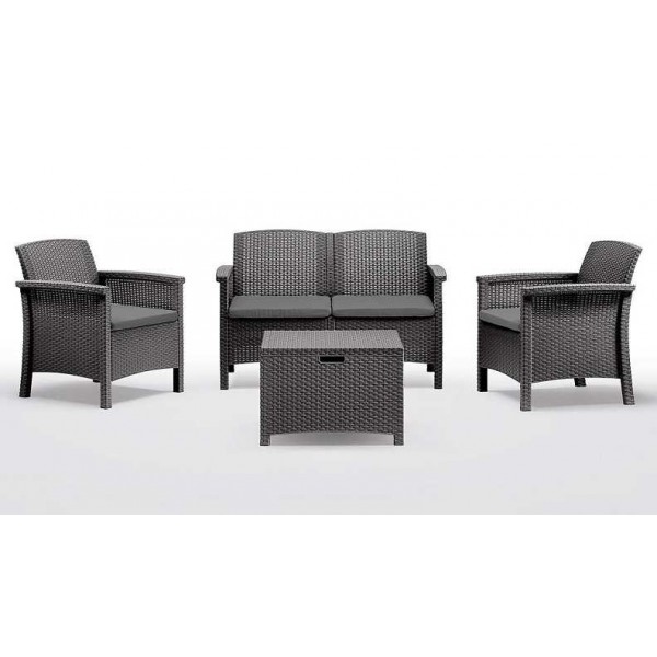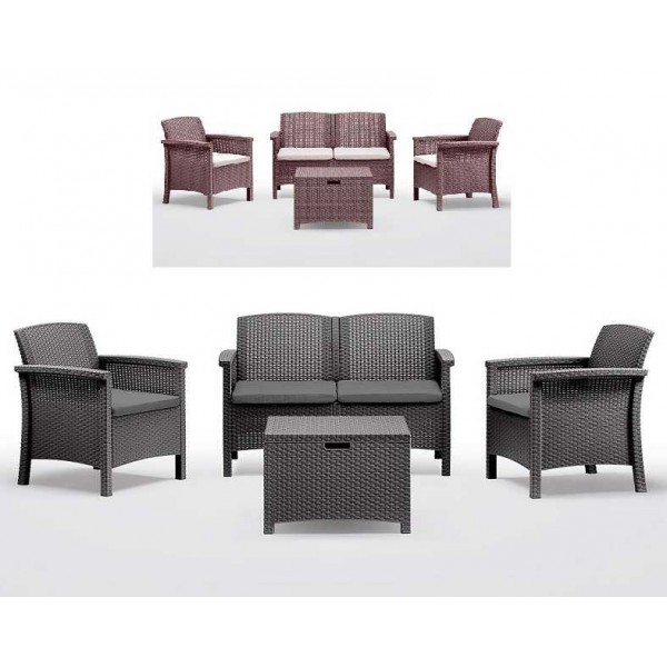 Conjunto Rattan Venezia 2 para 4 personas en polipropileno con efecto ratán (impermeable). Diseño moderno para jardín, veranda, hogar, bar, pub, restaurante, pizzería, pastelería, catering, boda boda con la mejor relación calidad-precio.